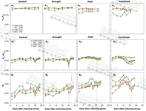 發(fā)表于 Agronomy《Investigating Combined Drought- and Heat Stress Effects in Wheat under Controlled Conditions by Dynamic Image-Based Phenotyping》的研究,就采用PlantScreen高通量表型成像分析技術(shù)對干旱、高溫及其復(fù)合脅迫對四種北歐小麥基因型的影響進行了綜合評價,以篩選耐受性強的品種。