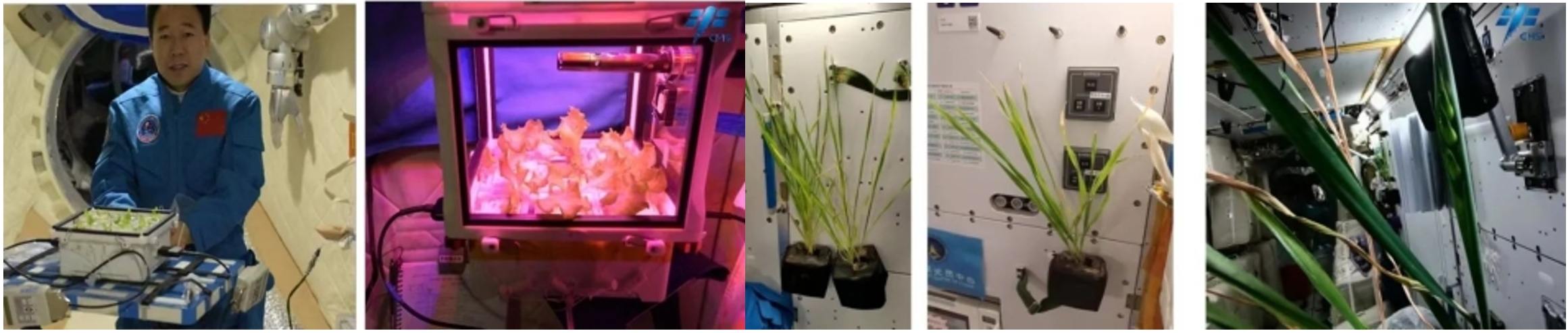 中國天宮空間站中的生菜與小麥培養(yǎng)實驗(轉(zhuǎn)自中國載人航天官網(wǎng))