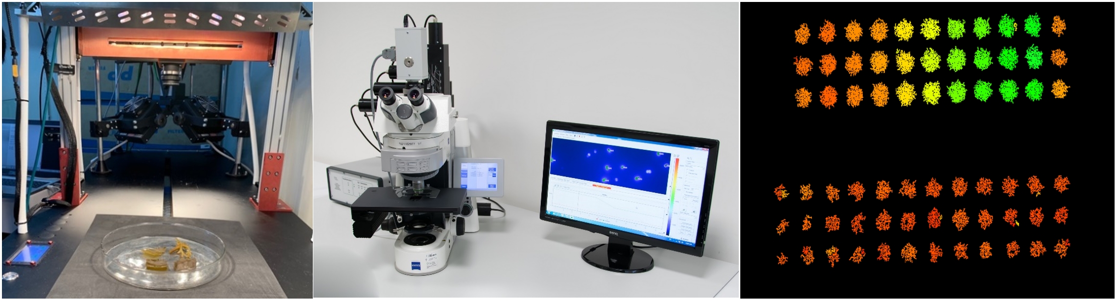葉綠素?zé)晒獬上窦夹g(shù)廣泛應(yīng)用于藻類、植物生長狀態(tài)與光合生理評估,左圖:基因編輯擬南芥抗病毒檢測;中圖:利用微藻進(jìn)行高通量環(huán)境毒性生物標(biāo)記檢測;右圖:國際空間站使用FluorPen葉綠素?zé)晒鈨x進(jìn)行植物生長狀態(tài)檢測