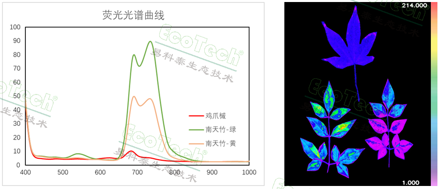 左圖:熒光光譜曲線圖;右圖:葉綠素?zé)晒釬690