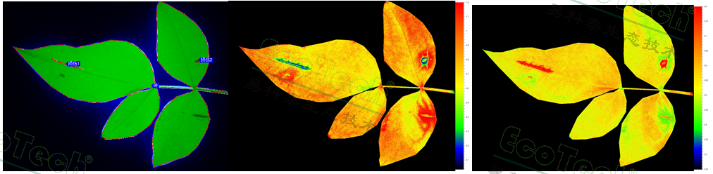 從左到右依次為:RGB圖、熒光衰減指數(shù)Rfd、被動(dòng)熱散失的能量比率Y(NO)