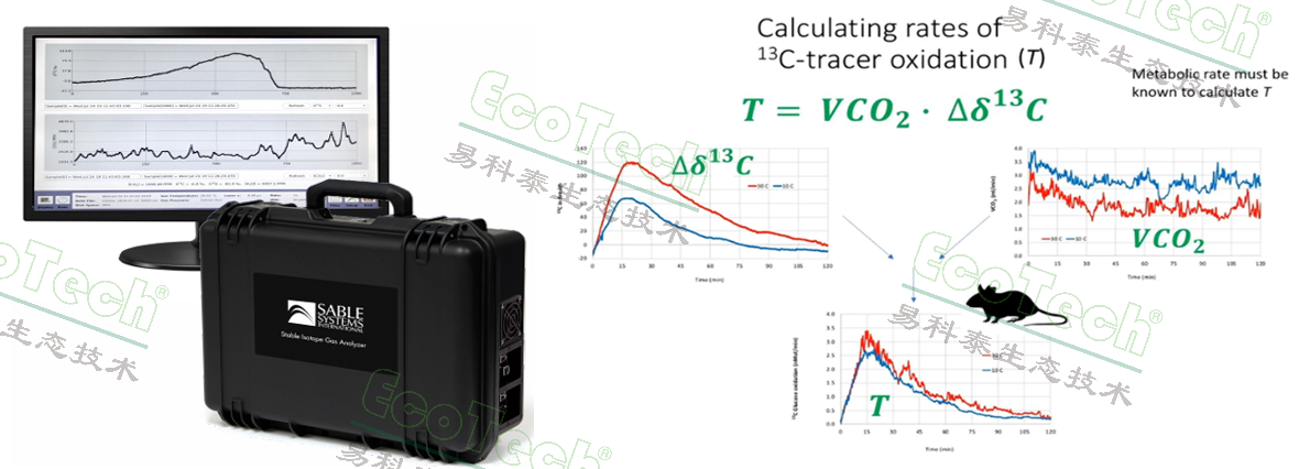 通過代謝示蹤劑(如碳-13標(biāo)記物,就像給生物分子裝上了精確GPS定位器)跟蹤,以及呼吸穩(wěn)定同位素分析儀實(shí)時(shí)監(jiān)測動(dòng)物呼出氣體中的13CO2來區(qū)分量化動(dòng)物能量代謝中消耗的哪些能量物質(zhì)等,可以更深入的研究代謝生理學(xué)機(jī)制(如代謝靈活性)等,而這種定量測量特定能量物質(zhì)氧化速率往往也需要知道VCO2。