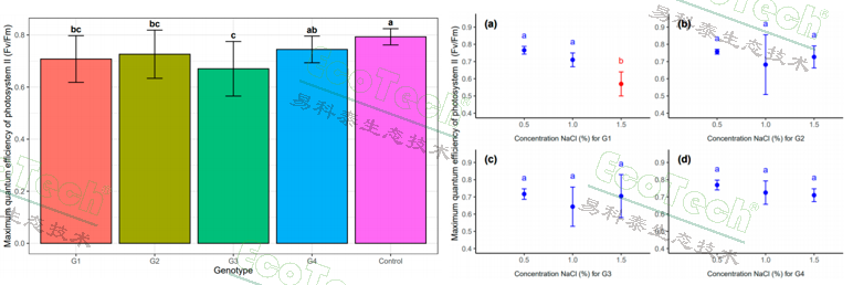 愈傷組織的Fv/Fm:基因型G4的光合最為穩(wěn)定,而基因型G3的光合則表現(xiàn)最弱。
