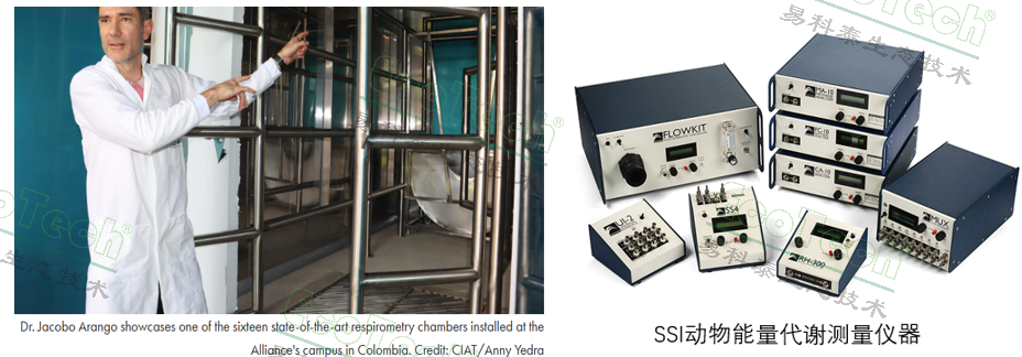 為了低甲烷飼料項(xiàng)目(Low-methane forages,LMF project,The project is evaluating thousands of forage accessions to identify natural plant compounds with anti-methanogenic properties, meaning compounds capable of reducing methane production in the animals that consume them, thereby promoting a more sustainable approach to livestock farming)——對(duì)幾千種飼草品種進(jìn)行檢測(cè)評(píng)估,以找出具備“抗甲烷產(chǎn)生”的成分,從而使家畜飼用甲烷排放低的飼料。 2024年底國(guó)際農(nóng)業(yè)研究聯(lián)盟(Alliance Bioversity-CIAT)在拉丁美洲哥倫比亞帕爾米拉校區(qū)啟用了16通道牲畜能量代謝測(cè)量室(8個(gè)用于綿羊,8個(gè)用于牛,https://alliancebioversityciat.org/stories/measuring-livestocks-methane-emissions-minimal-disturbance-maximum-ease),并搭配了世界最先進(jìn)的SSI動(dòng)物能量代謝測(cè)量?jī)x器(詳情請(qǐng)咨詢北京易科泰生態(tài)技術(shù)有限公司),可以精確監(jiān)測(cè)來自不同飲食選擇的氣體濃度,同時(shí)其氣密和受控的環(huán)境保持恒定的溫度、濕度和氣流,以高動(dòng)物福利監(jiān)督標(biāo)準(zhǔn)模擬未來牲畜飼養(yǎng)規(guī)模研究的真實(shí)條件。
